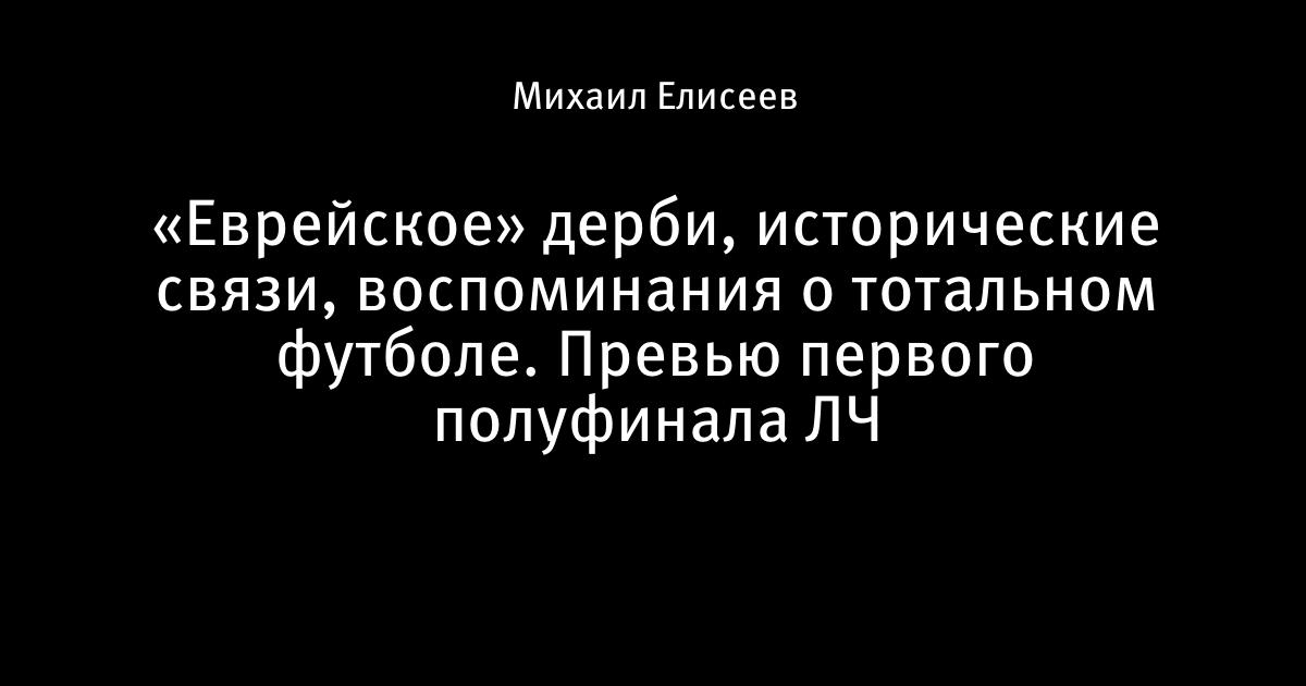 «Еврейское» дерби, исторические связи, воспоминания о тотальном футболе. Превью первого полуфинала ЛЧ