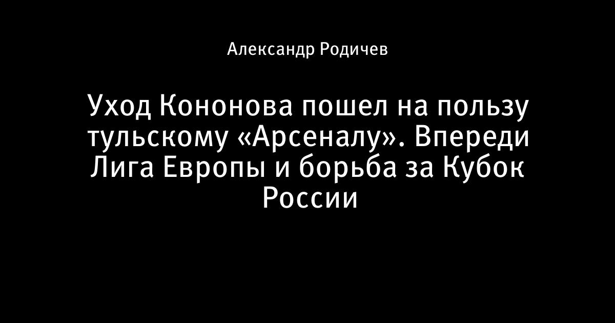 Уход Кононова пошел на пользу тульскому «Арсеналу». Впереди Лига Европы и борьба за Кубок России