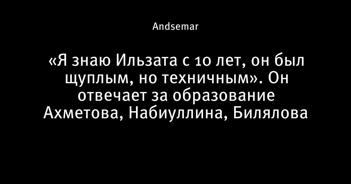 «Я знаю Ильзата с 10 лет, он был щуплым, но техничным». Он отвечает за образование Ахметова, Набиуллина, Билялова