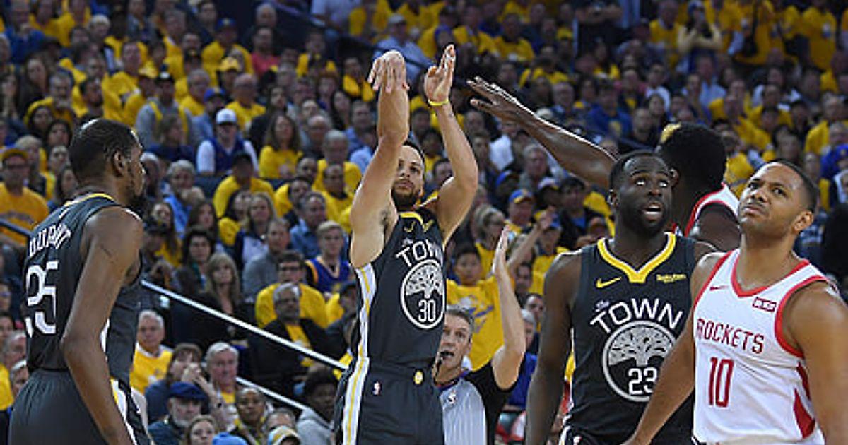 Карри завалил один трехочковый, но в основном в эти минуты нарисовался «Голден Стэйт» классического образца – команда, которая пугает постоянной угрозой с периметра, но предпочитает разрывать защиту мелкой перепасовкой. Как и в первой игре, было видно, что у «Хьюстона» не получается реагировать на нее согласованно, затруднять перемещения вне мяча, страховать от проходов.