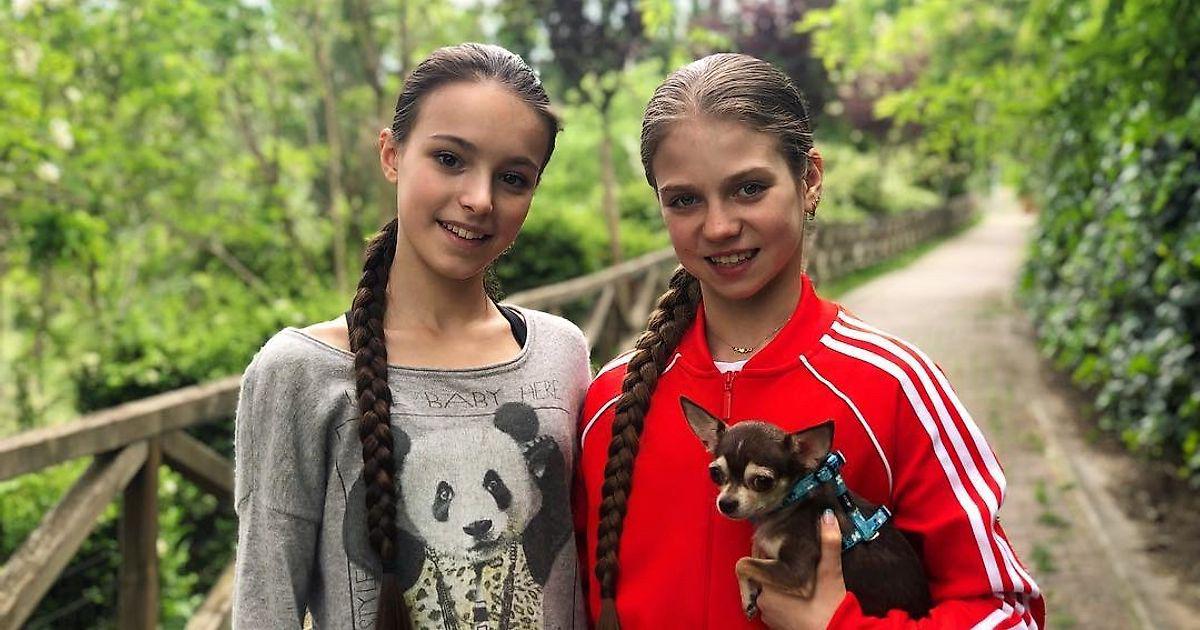 Alexandra Trusova and Anna Shcherbakova practice in Bologna, Italy