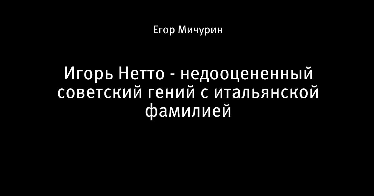 Игорь Нетто - недооцененный советский гений с итальянской фамилией