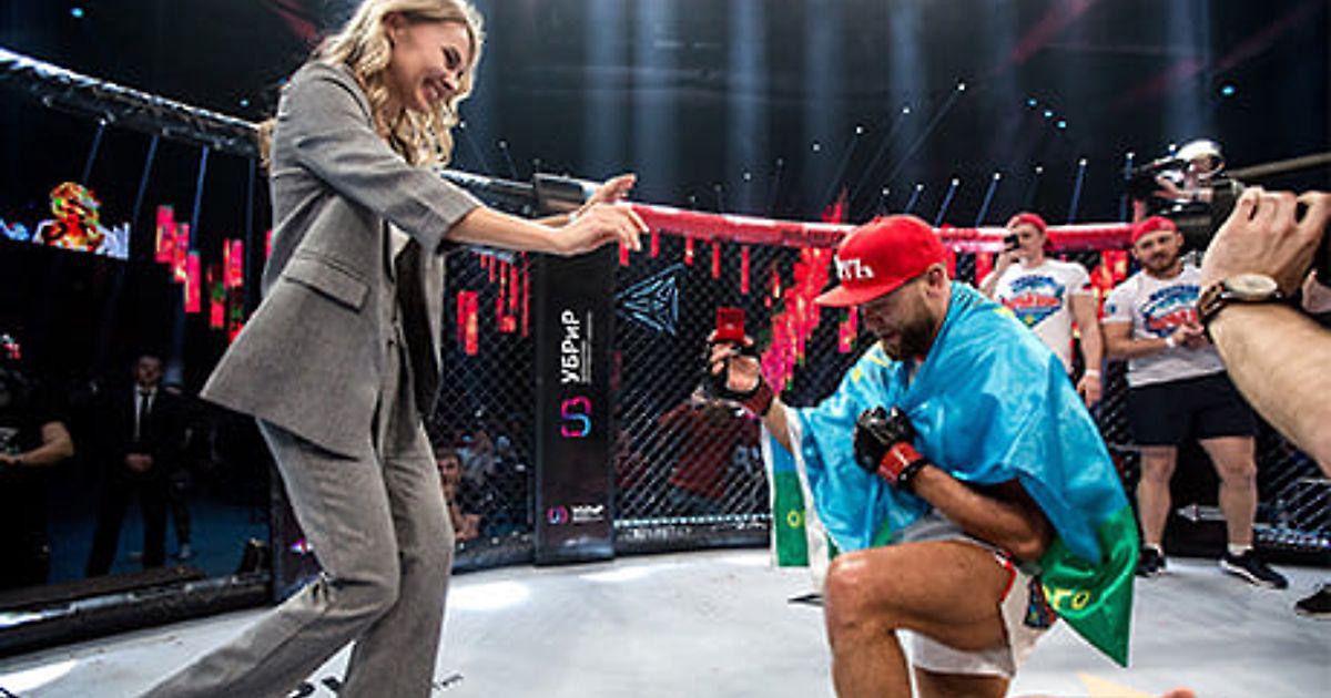 – Можно сейчас сюда позвать мою девушку, – сказал Алексахин из клетки и возлюбленная бойца через несколько мгновений появилась. Николай встал на колено и сделал ей предложение руки и сердца. Девушка от эмоций закрыла лицо руками: такого не ожидала, но, конечно, согласилась.