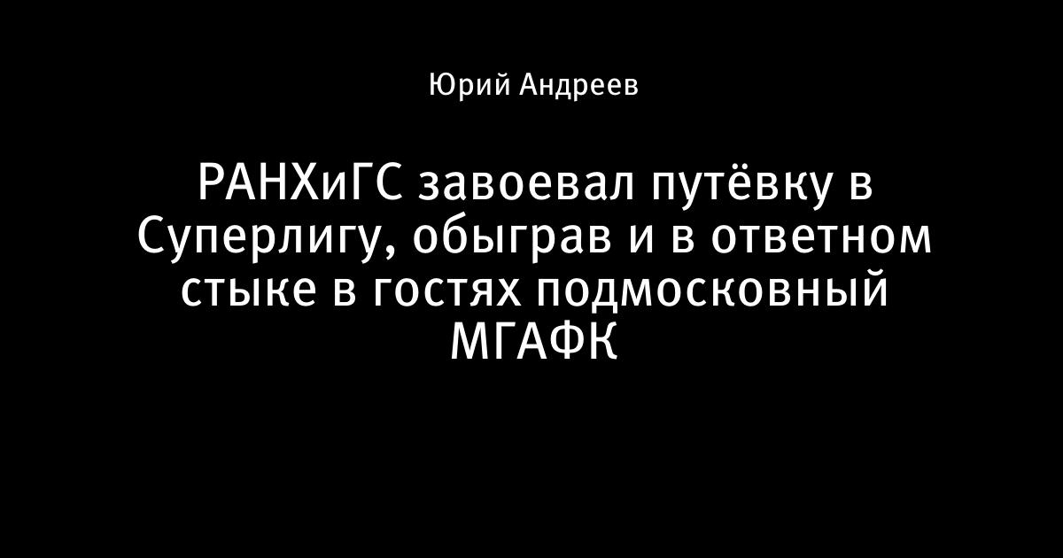 РАНХиГС завоевал путёвку в Суперлигу, обыграв и в ответном стыке в гостях подмосковный МГАФК