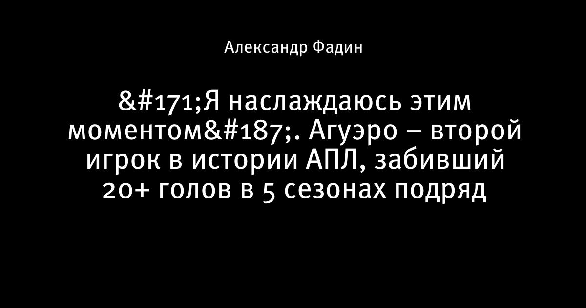 «Я наслаждаюсь этим моментом». Агуэро – второй игрок в истории АПЛ, забивший 20+ голов в 5 сезонах подряд