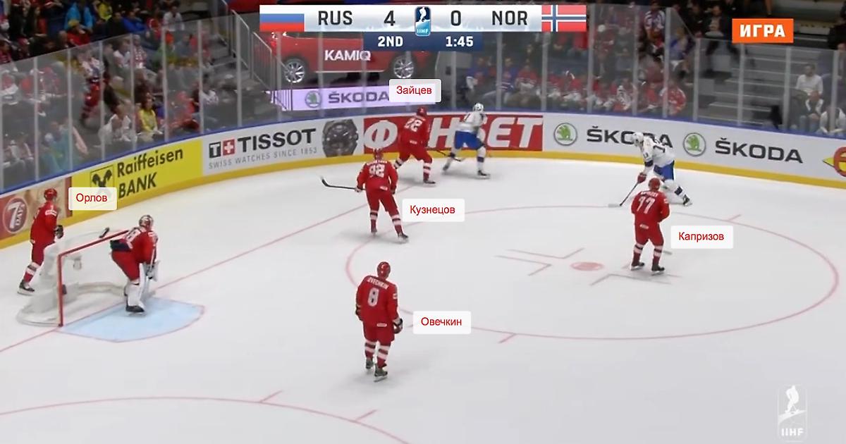 Причем, если смотреть разбивку по зонам, получается, что против норвежцев мы достаточно много времени провели c шайбой в своей зоне — и это наш классический прием. Если чехи летят вперед и бьют Швецию, атакуя в сумме всего 25 минут, то у нас Гавриков предпочтет откатиться за свои ворота и запустить смену.
