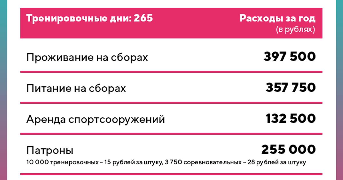 Цифры на местах варьируются, но ориентируемся на раскладку от региональной федерации: тренировочный патрон стоит 15 рублей, соревновательный – 28. Соотношение – примерно три к одному в пользу тренировочных. Общие траты на год – 180-200 тысяч рублей. Сколько из них вложит школа, а сколько семья – тут не угадать, зависит от региона. Например, в Свердловской области недавно пожаловались, что денег на патроны нет. Видимо, там покупают родители.