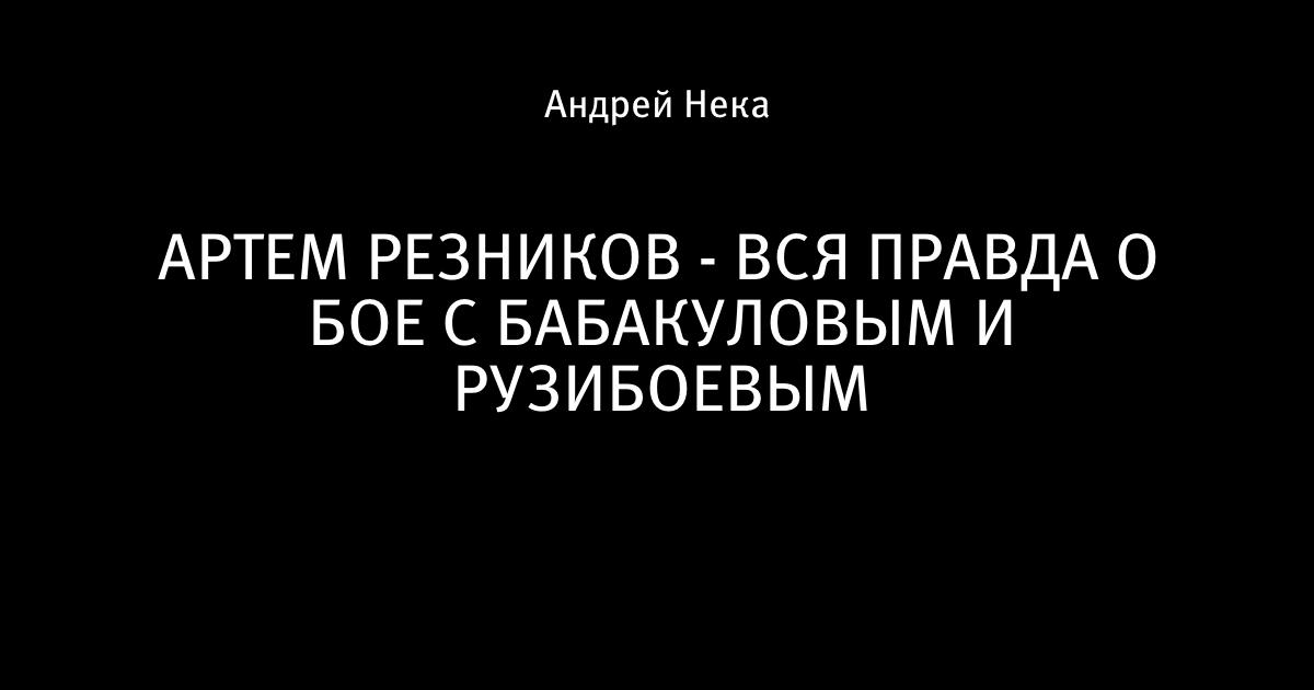 АРТЕМ РЕЗНИКОВ - ВСЯ ПРАВДА О БОЕ С БАБАКУЛОВЫМ И РУЗИБОЕВЫМ