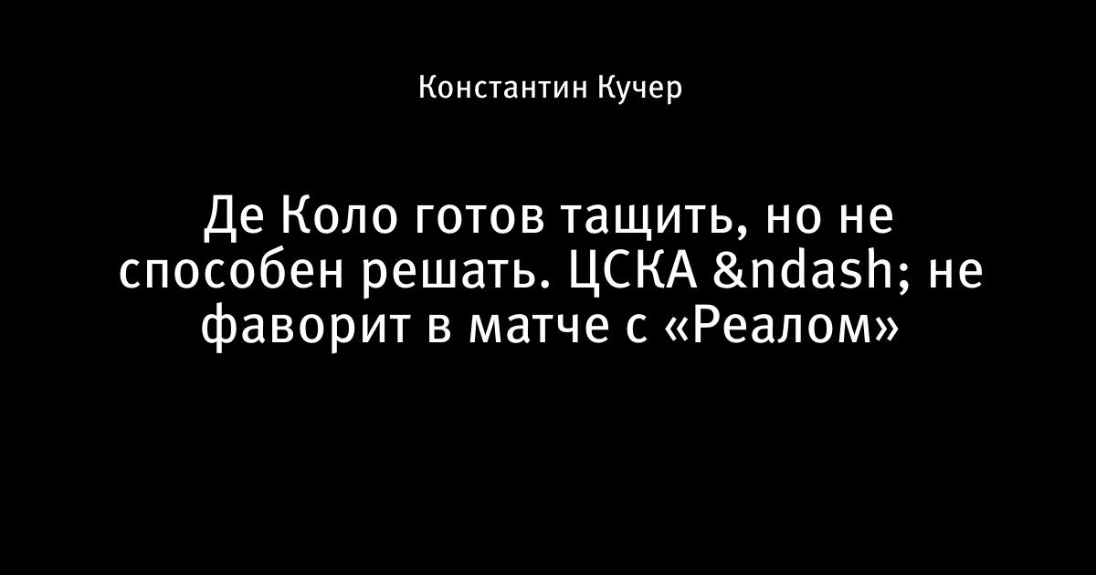 Де Коло готов тащить, но не способен решать. ЦСКА – не фаворит в матче с «Реалом»