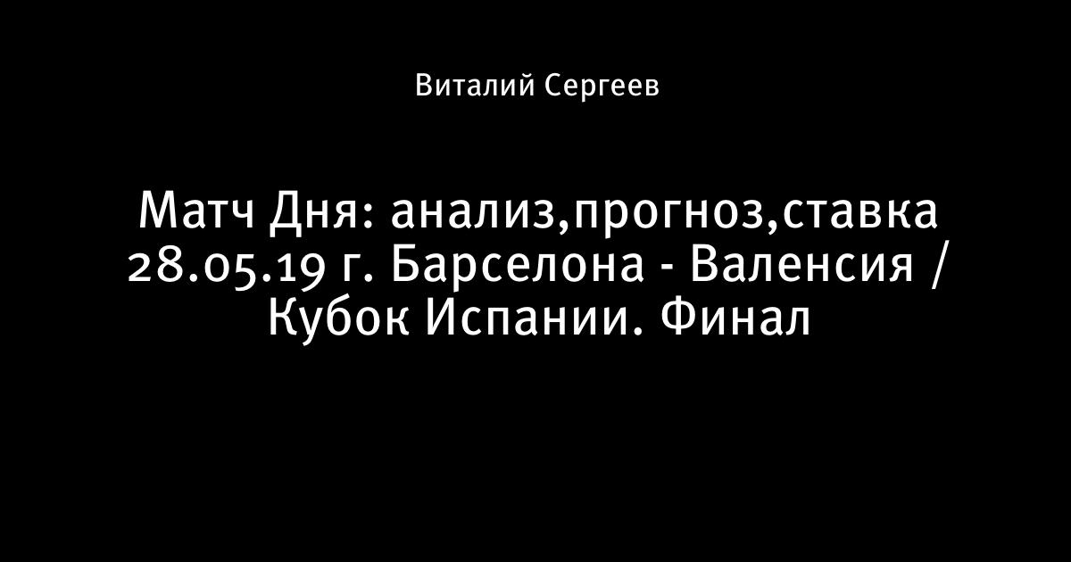 Матч Дня: анализ,прогноз,ставка 28.05.19 г. Барселона - Валенсия / Кубок Испании. Финал