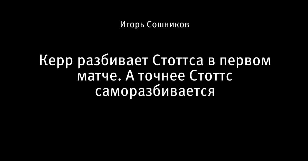 Керр разбивает Стоттса в первом матче. А точнее Стоттс саморазбивается