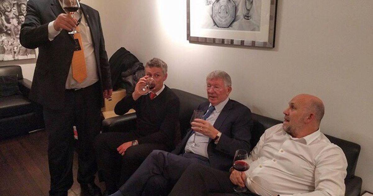 Сульшер, сэр Алекс и Фелан после матча с «Кардиффом» на благотворительном мероприятии. Фергюсон спросил Оле по поводу результата игры: «Что это было, сын мой?»