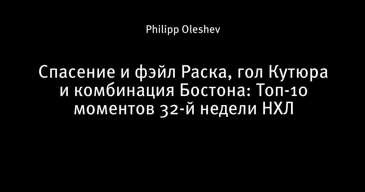 Спасение и фэйл Раска, гол Кутюра и комбинация Бостона: Топ-10 моментов 32-й недели НХЛ