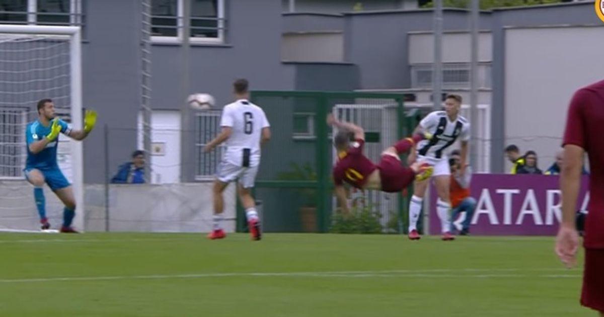 Потрясающая бисиклета из матча молодежных команд «Ромы» и «Юве». Нападающий выпрыгнул и положил полубоком