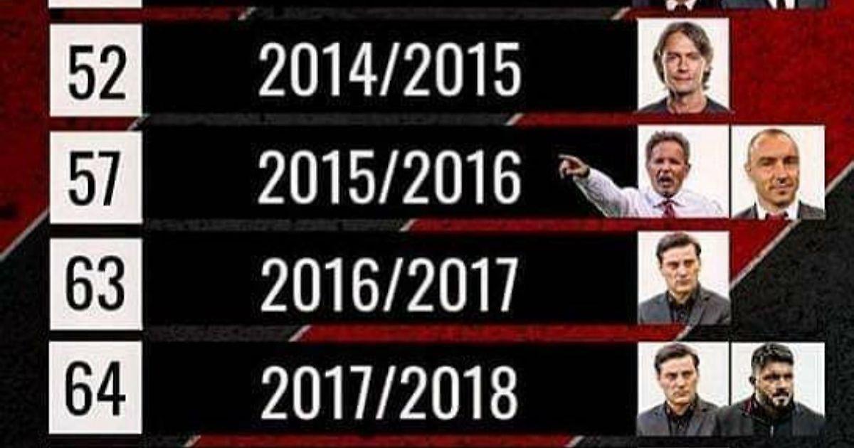 Количество очков, заработанных «Миланом» в последние 6 лет