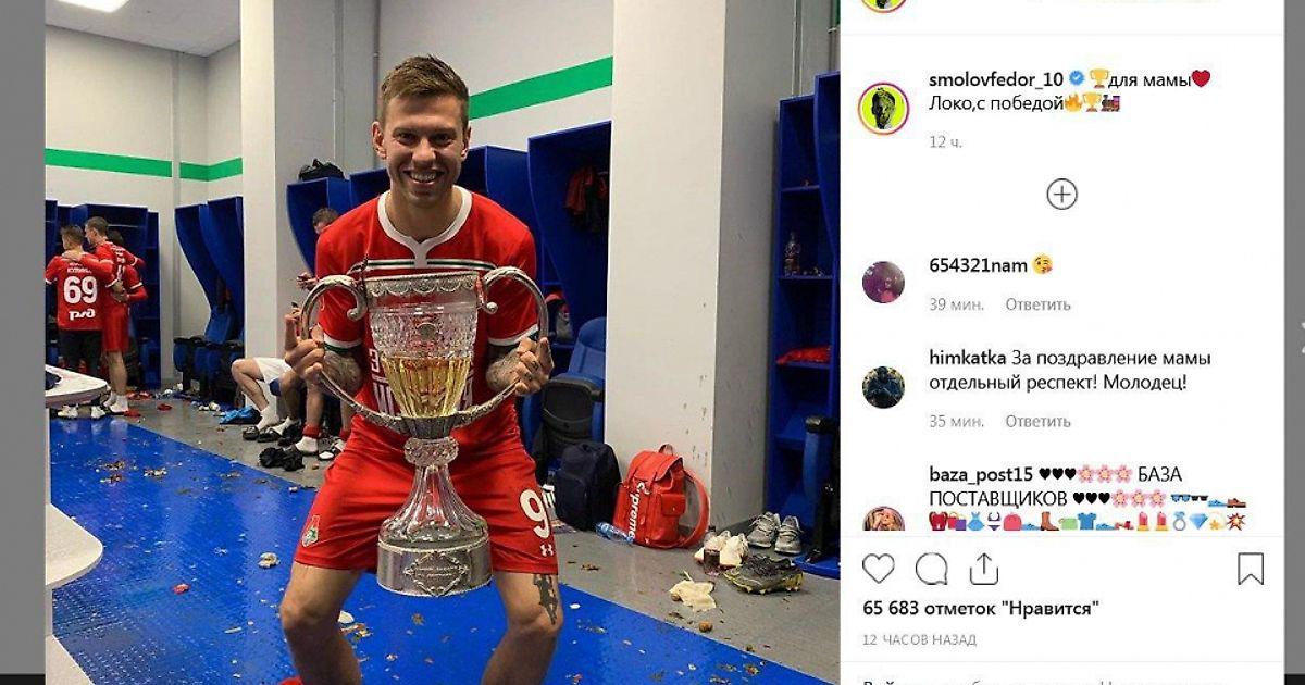 Зачем после награждения тащил в раздевалку Федора Смолова? Он весь сезон не пил, вообще ни капли спиртного. До матча сказал ему, что если мы выиграем Кубок, то он обязательно выпьет из него шампанского. Он ответил — посмотрим. В итоге выпил», — цитируют Тарасова «Известия».