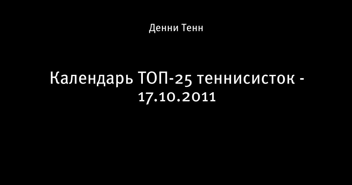 17 октября 2011, 10:04 Календарь ТОП-25 теннисисток - 17.10.2011 ТОП-25 теннисисток заявили свое участие в следующих турнирах: Автор Денни Тенн Этот пост опубликован в блоге на Трибуне Sports.ru. Присоединяйтесь к крупнейшему сообществу спортивных болельщиков! Другие посты блога Nasha Masha