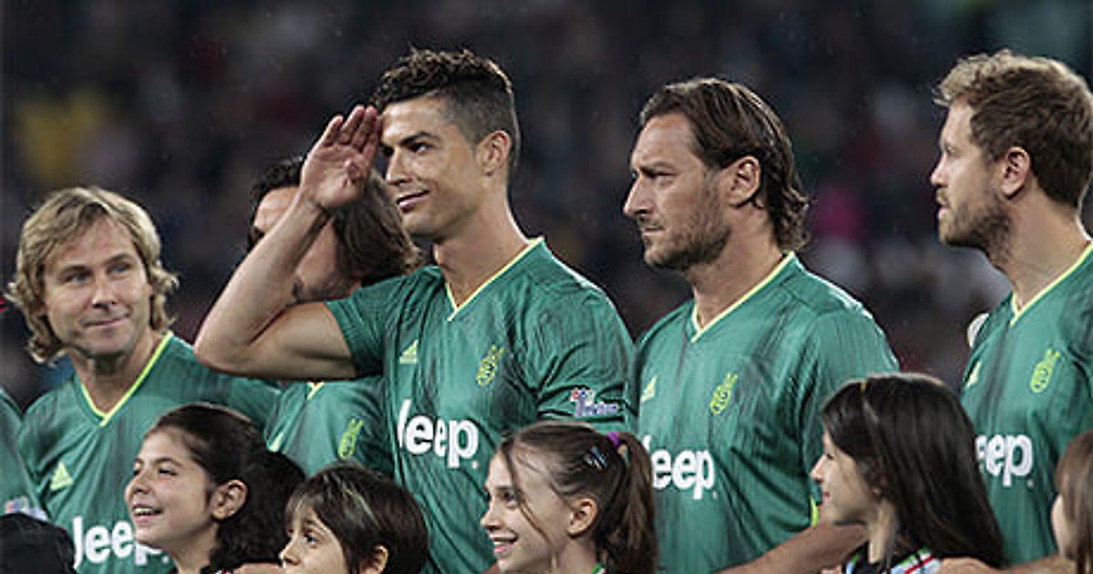 Роналду, Тотти, Пирло, Буффон и Недвед сыграли в футбол со звездами «Феррари» на стадионе «Ювентуса»