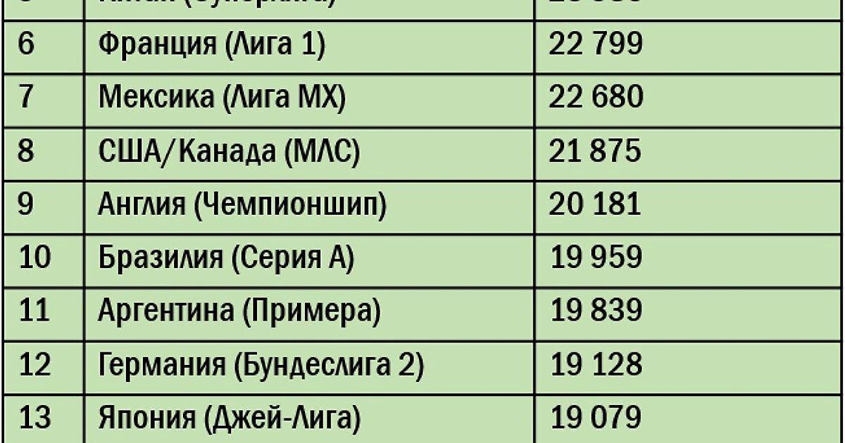 Представляем вниманию рейтинг топ-20 самых посещаемых чемпионатов в мире по итогам сезона