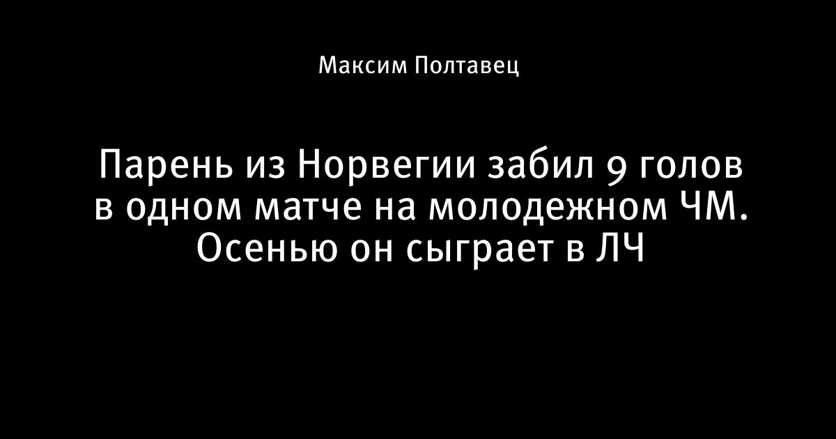 Парень из Норвегии забил 9 голов в одном матче на молодежном ЧМ. Осенью он сыграет в ЛЧ