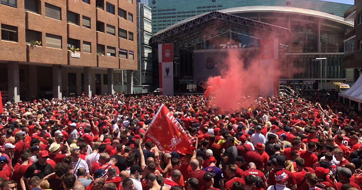 Liverpool fans have absolutely taken over the Plaza Felipe II, it’s an incredible scene. 🔴🔴