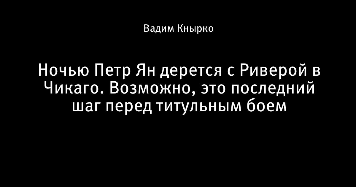 Ночью Петр Ян дерется с Риверой в Чикаго. Возможно, это последний шаг перед титульным боем