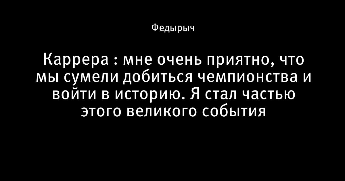 Каррера : мне очень приятно, что мы сумели добиться чемпионства и войти в историю. Я стал частью этого великого события