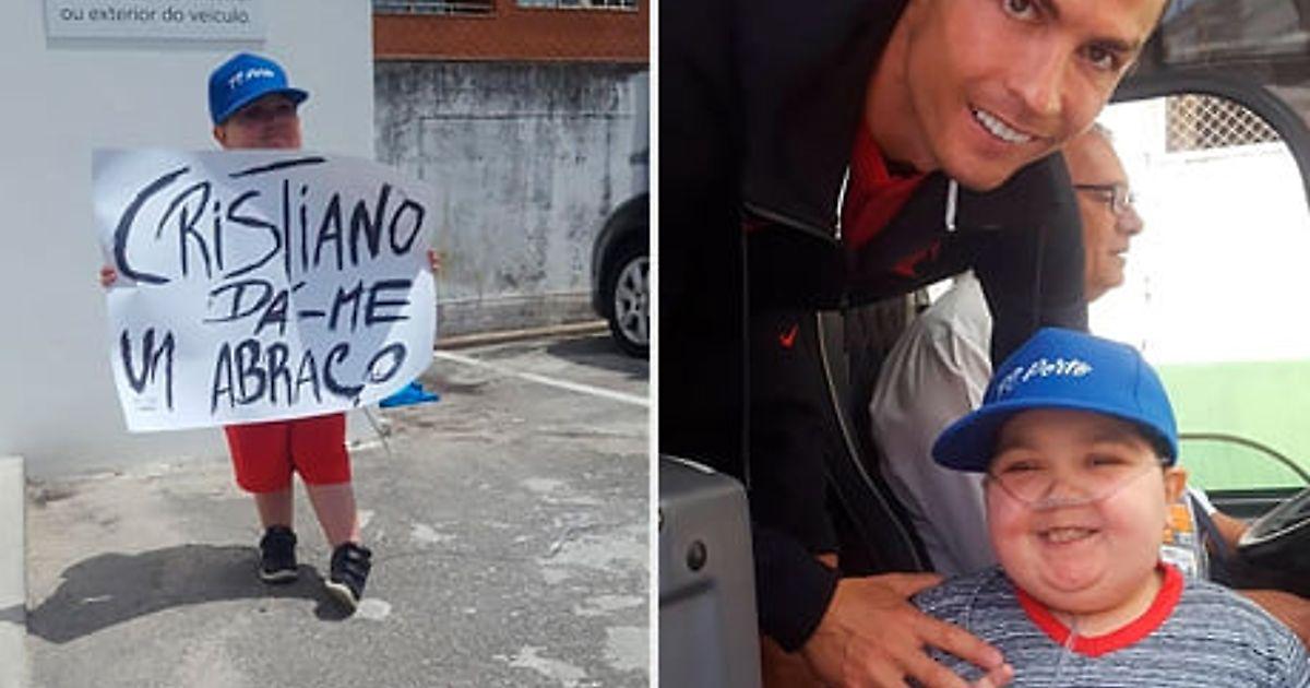 В воскресенье сборная Португалии примет Голландию на «Драгау» в финале Лиги наций. После тренировки футболисты отправились в отель на автобусе, и Роналду заметил из окна мальчика с плакатом «Cristiano Ronaldo dame un abrazo» («Криштиану Роналду, обними меня»).