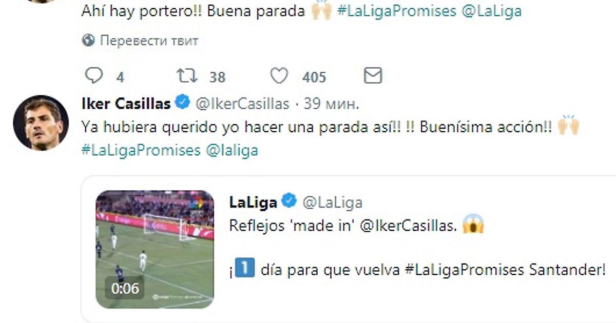 Перед стартом нового розыгрыша национального турнира «LaLiga Promises» официальный твиттер-аккаунт Ла Лиги напомнил об одном из красивейших и главных моментов проходившего в конце декабря турнира «LaLiga Promises International». Упомянутый в твите Легендарный Икер высоко оценил талант юного коллеги.