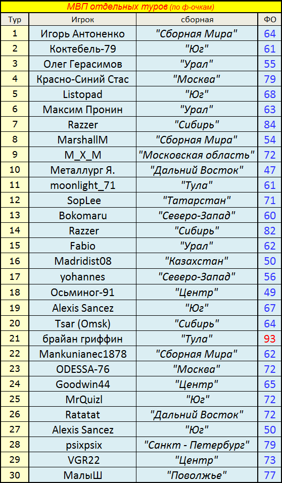 Всем участникам турнира, кто начал и доиграл сезон дисциплинированно, СПАСИБО за участие!!!
