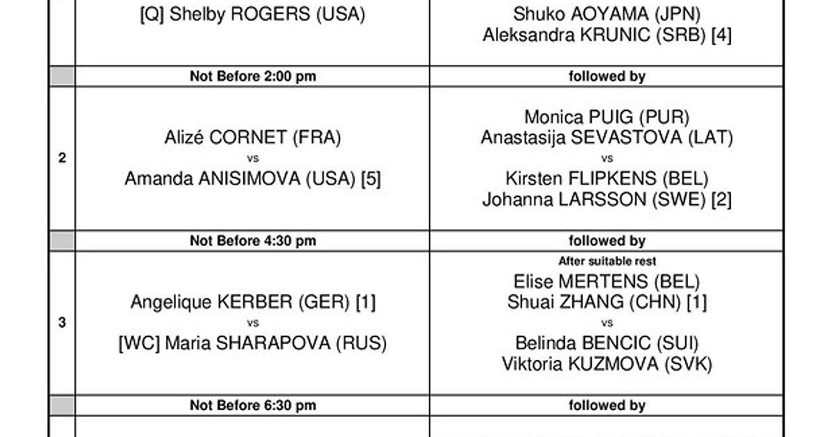 ИТАК: Играем сегодня, в четверг не ранее 16:30 по местному, по мск 17:30 на центральном корте.