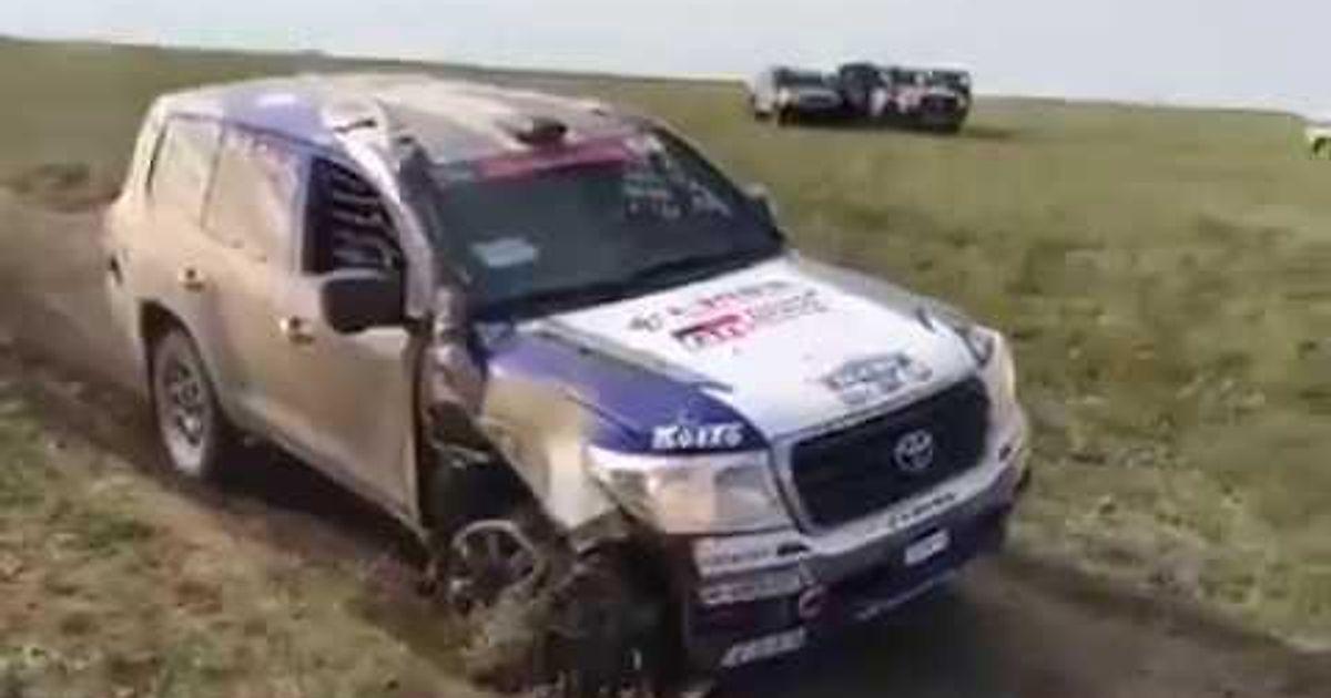 К тому моменту все запасные шины экипаж Миуры уже использовал, машине пришлось проехать около 70 километров в подбитом состоянии. И «Тойота» дотянула до финиша! Ночью Акира поменял колесо с подвеской и продолжил борьбу — пока не сошел в последний день из-за аварии. Трудностями его не напугать, так что если ищете ярких рейдовых историй — следите за аитийцем, он точно что-нибудь преподнесет.
