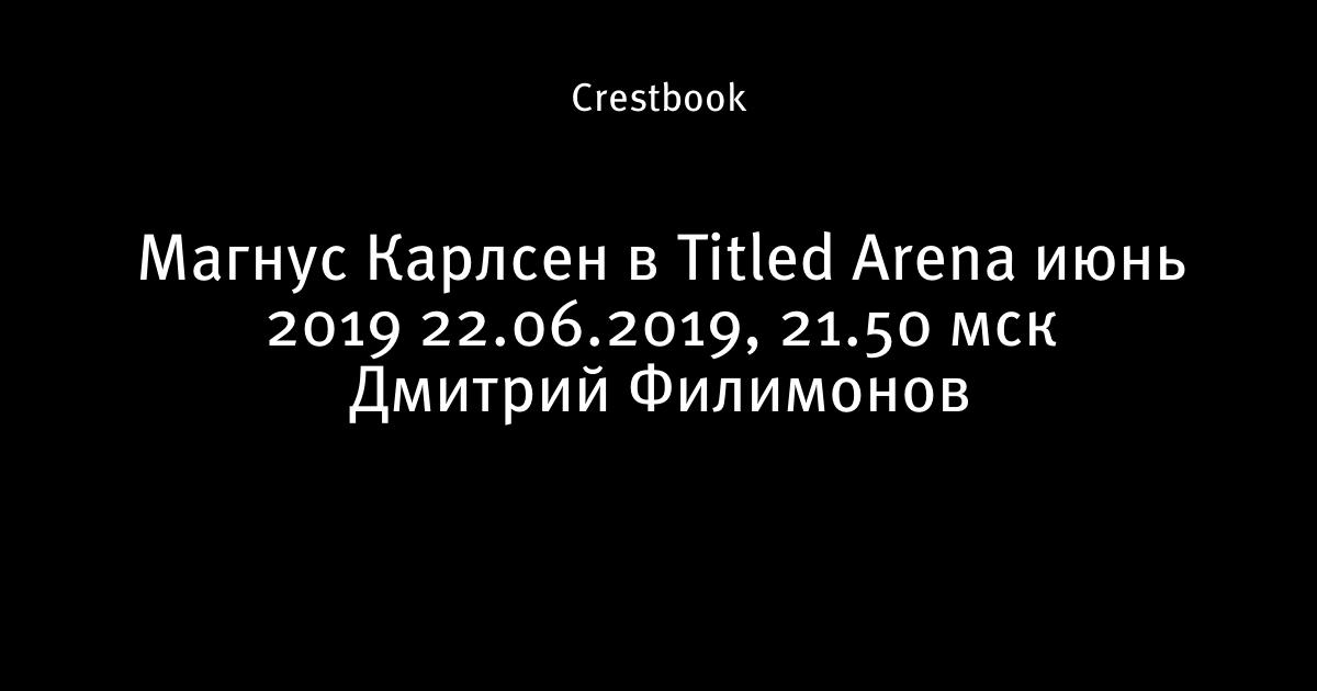 21 июня 2019, 19:20 Магнус Карлсен в 👑 Titled Arena июнь 2019 ⏰ 22.06.2019, 21.50 мск 🎤 Дмитрий Филимонов Автор Crestbook Этот пост опубликован в блоге на Трибуне Sports.ru. Присоединяйтесь к крупнейшему сообществу спортивных болельщиков! Другие посты блога Увлекательные шахматы Магнус Карлсен