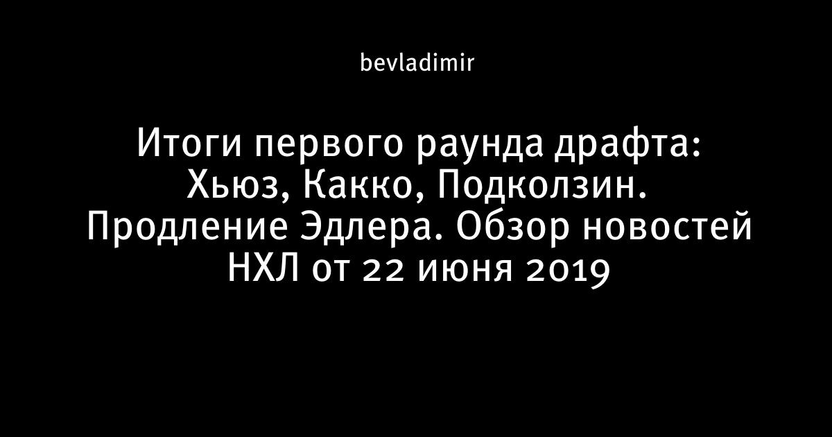 Итоги первого раунда драфта: Хьюз, Какко, Подколзин. Продление Эдлера. Обзор новостей НХЛ от 22 июня 2019