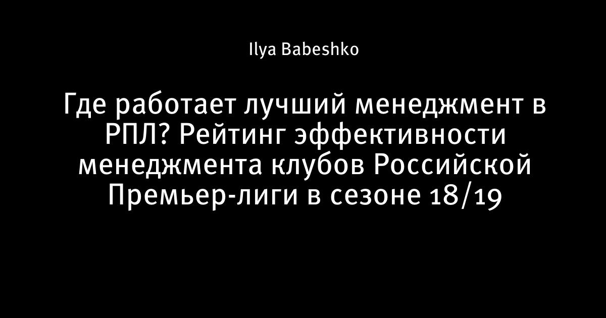 Где работает лучший менеджмент в РПЛ? Рейтинг эффективности менеджмента клубов Российской Премьер-лиги в сезоне 18/19