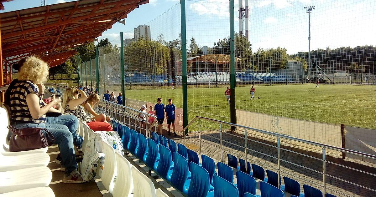 На большой трибуне за воротами (открыта недавно) сидеть было невозможно. Детский шум, включающий отдачу от металлического каркаса, метание гвоздей (?), а также бесконечным мат – родители, следите за речью своих детей, и когда они общаются между собой. Ладно, мальчики, но девочки!