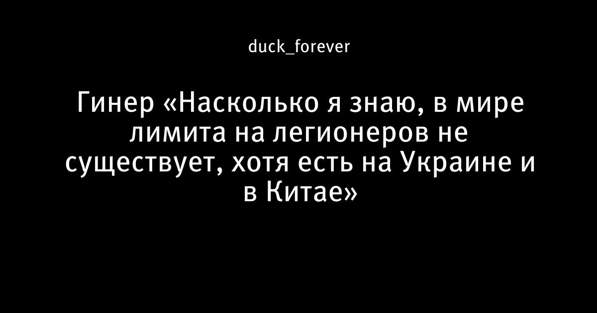 Гинер «Насколько я знаю, в мире лимита на легионеров не существует, хотя есть на Украине и в Китае»