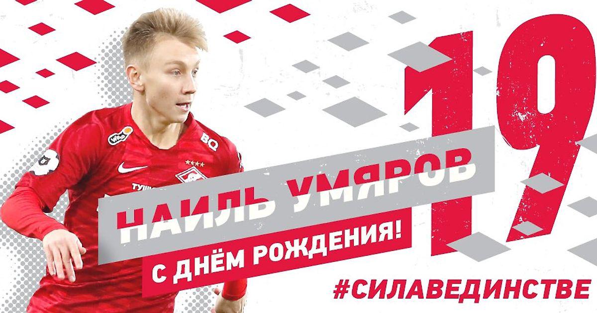 Сегодня исполняется 19 лет полузащитнику «Спартака» Наилю Умярову.