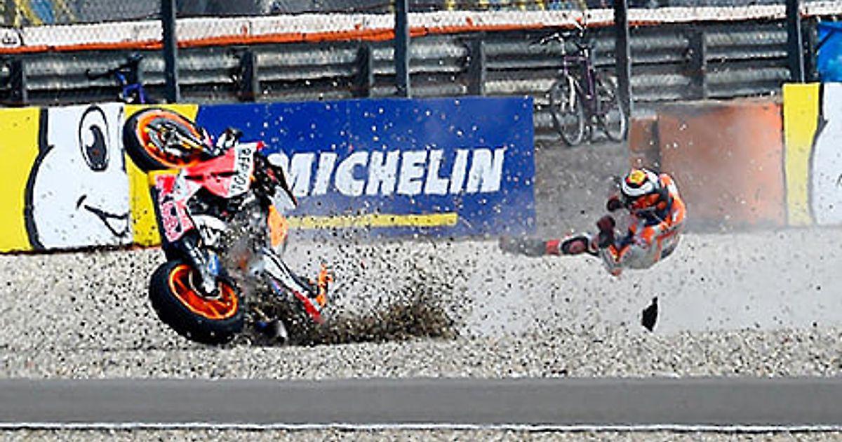 28 июня в практике перед этапом MotoGP в Ассене трехкратный чемпион серии Хорхе Лоренсо вылетел с трека в гравий и пережил несколько переворотов.