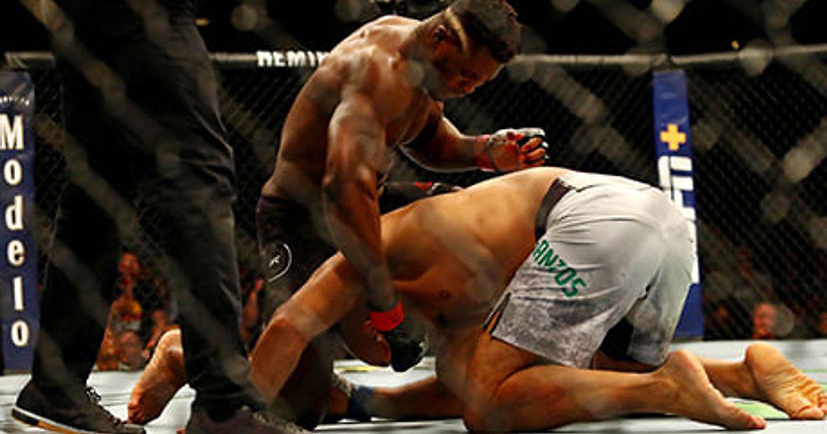 Франсис Нганну уничтожает тяжелый дивизион UFC. Ничего нового, но за последние два боя от его ударов упали два бывших чемпиона организации – Кейн Веласкес и Джуниор Дос Сантос. Бразилец рухнул в первом раунде как раз минувшей ночью, на турнире в Миннеаполисе. На эти бои у Нганну ушло менее двух минут, а общая статистика камерунского бойца пугает.
