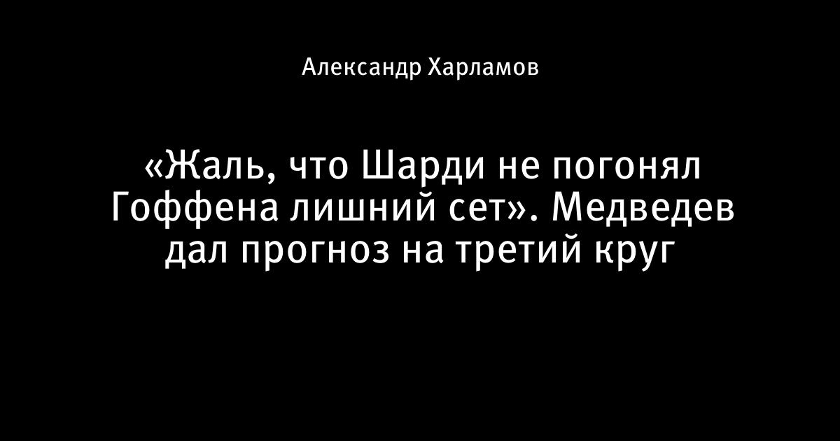 «Жаль, что Шарди не погонял Гоффена лишний сет». Медведев дал прогноз на третий круг