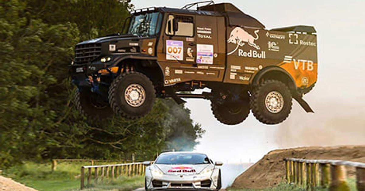 Российский чемпион «Дакара» перепрыгнул на «Камазе» через «Ламборгини». Серьезно!