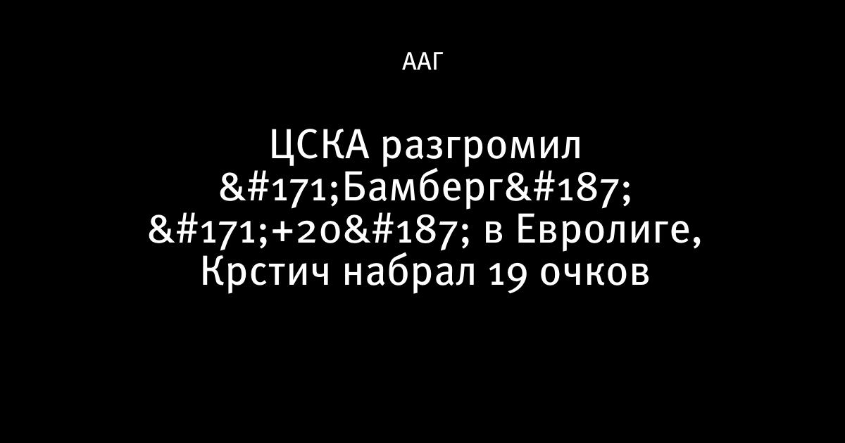 ЦСКА разгромил «Бамберг» «+20» в Евролиге, Крстич набрал 19 очков