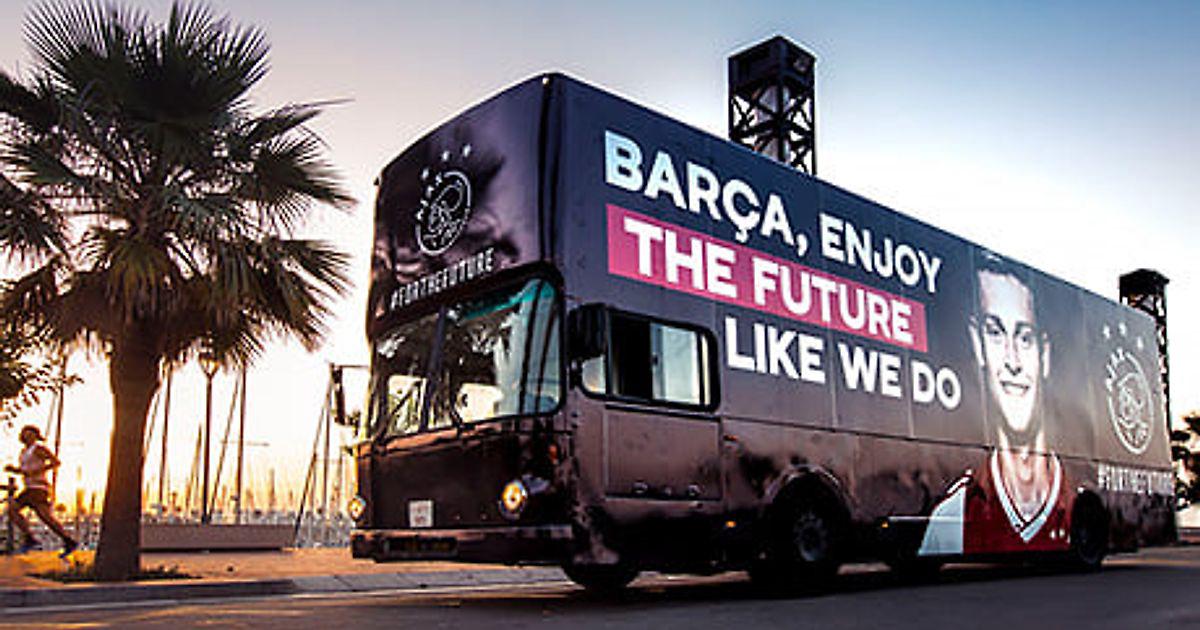 «Аякс» мило попрощался с Френки де Йонгом: голландский клуб выкупил рекламу на одном из туристических автобусов, который рассекает по Барселоне.