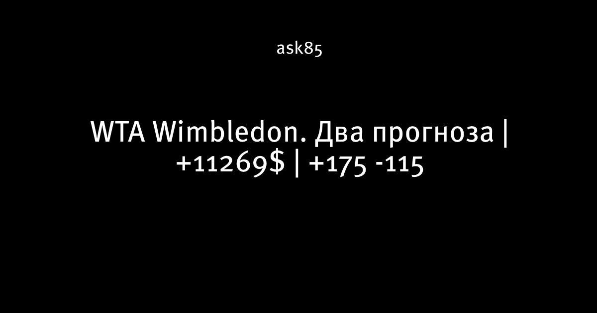WTA Wimbledon. Два прогноза | +11269$ | +175 -115