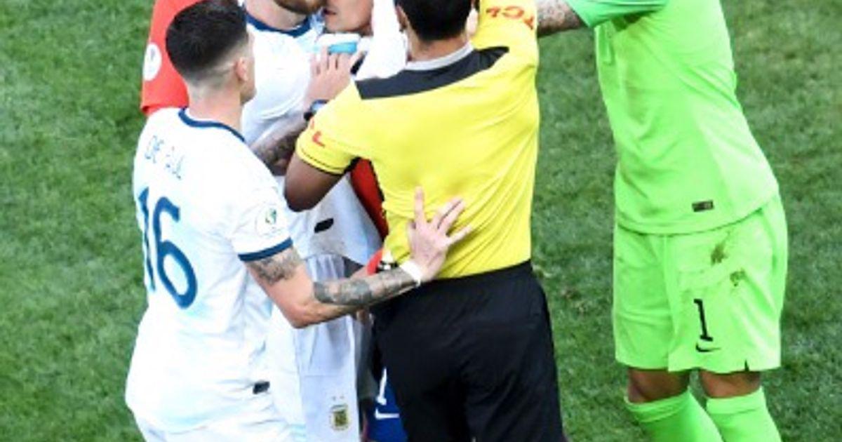 Несмотря на хорошую игру сборных, матч не обошёлся без скандалов. На 37 минуте произошёл спор между Месси и Меделем, в ходе которого оба потолкались и за что были награждены прямой красной карточкой. "Я думаю, что они дали мне красную карточку из-за моих предыдущих слов о судействе на Кубке Америки. Я всегда говорю правду, это меня успокаивает»-сказал Месси в послематчевом интервью.