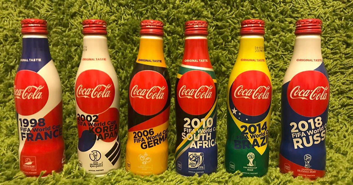 Как вы уже догадались, я очень ждал ЧМ 2018 в России. Однако наши не были оригинальными. Кола в России изменила лишь немного этикетку классической бутылки. Ниже вы можете увидеть, что классика/новый год и ЧМ 2018 (справа) выполнены в одном стиле.