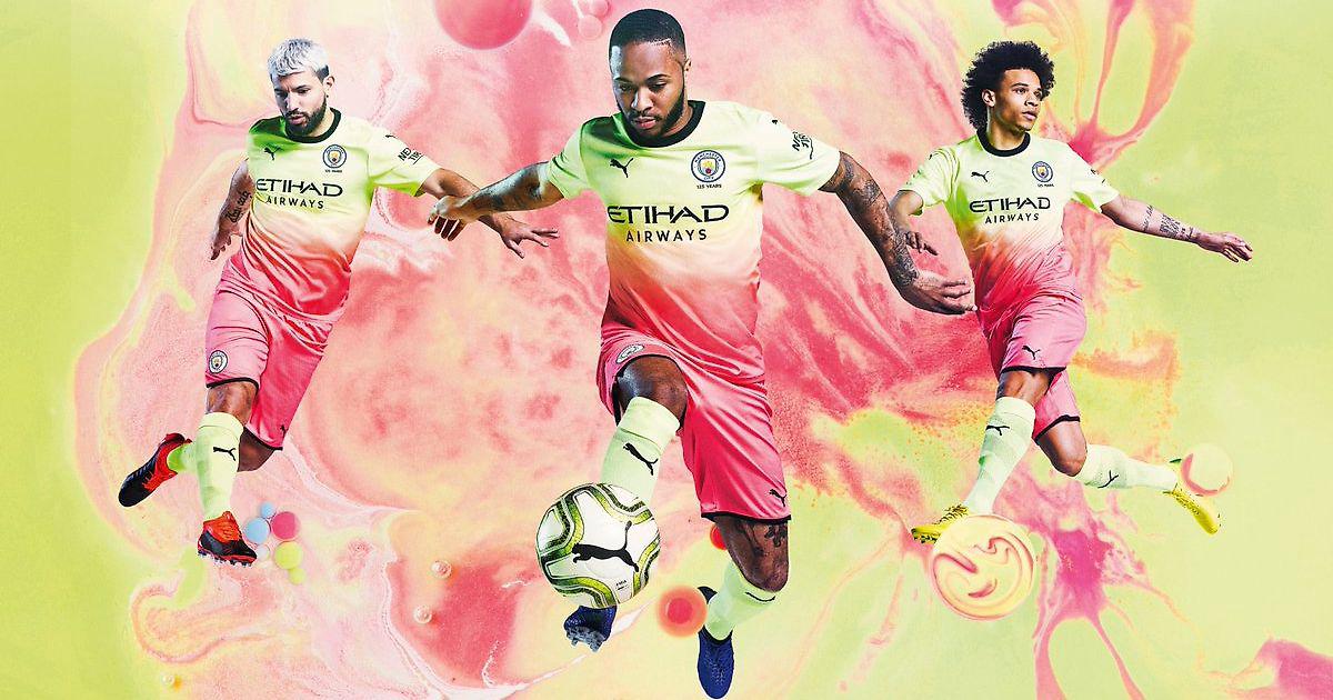 Самая кислотная форма сезона – у «Ман Сити». Это желто-розовый комплект