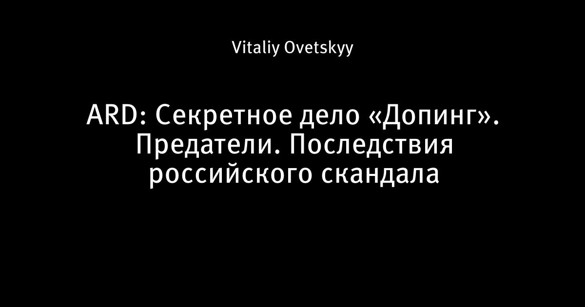 ARD: Секретное дело «Допинг». Предатели. Последствия российского скандала