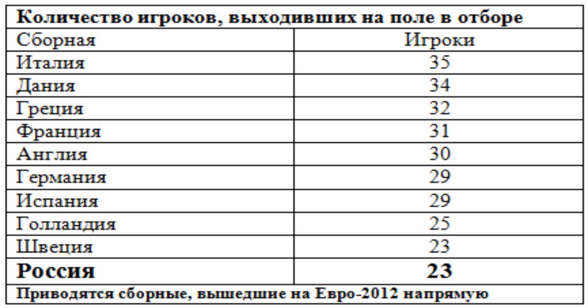 В этом отборочном цикле сборная России, средний возраст которой составил ровно 28 лет, стала самой возрастной из всех 51 сборной. Это чуть больше, чем у Мальты, – 27,9 и Кипра – 27,8. На континентальном первенстве сборная России может стать самой возрастной (около 29 лет). К примеру, на последнем чемпионате в ЮАР самыми возрастными были сборные Бразилии и Австралии – 28.5 года. То есть Россия будет еще старше.